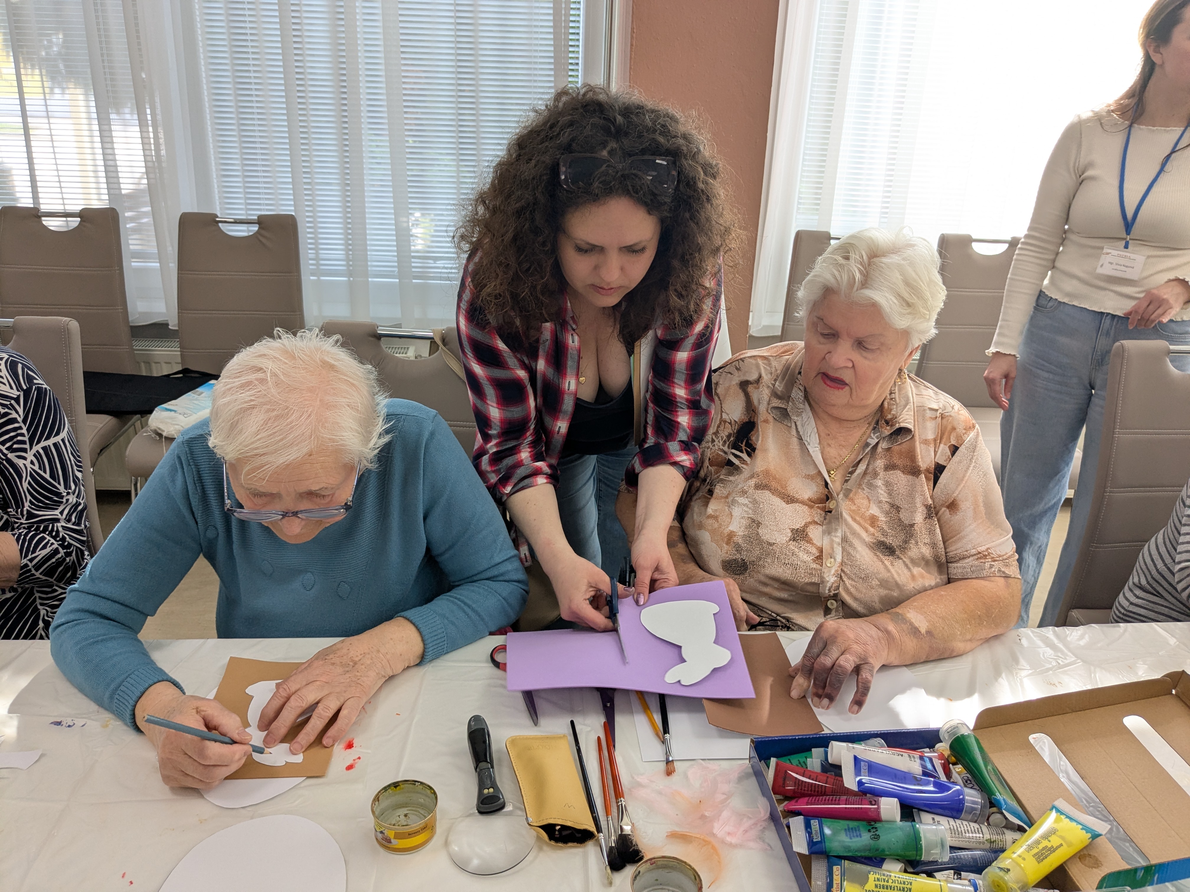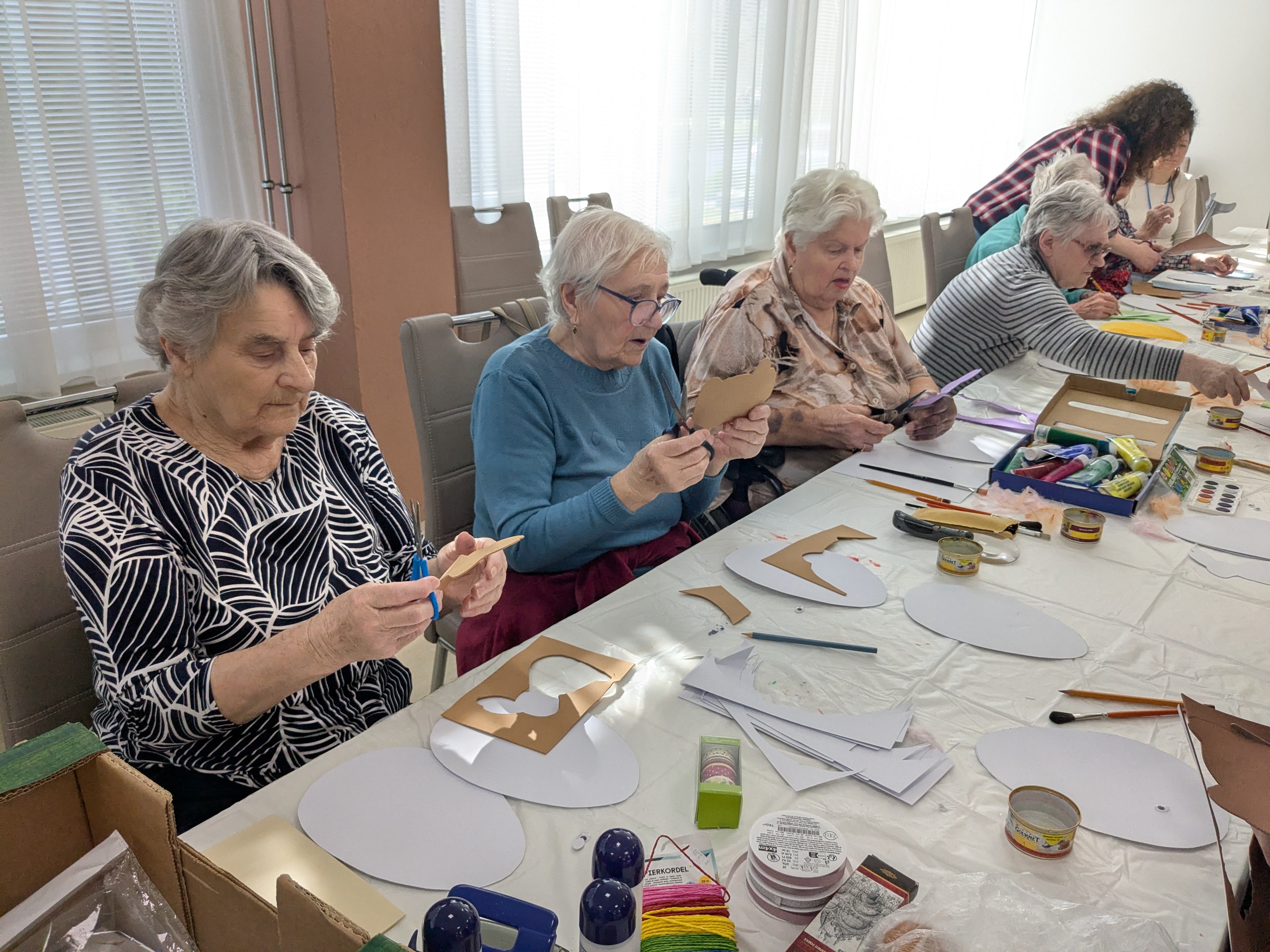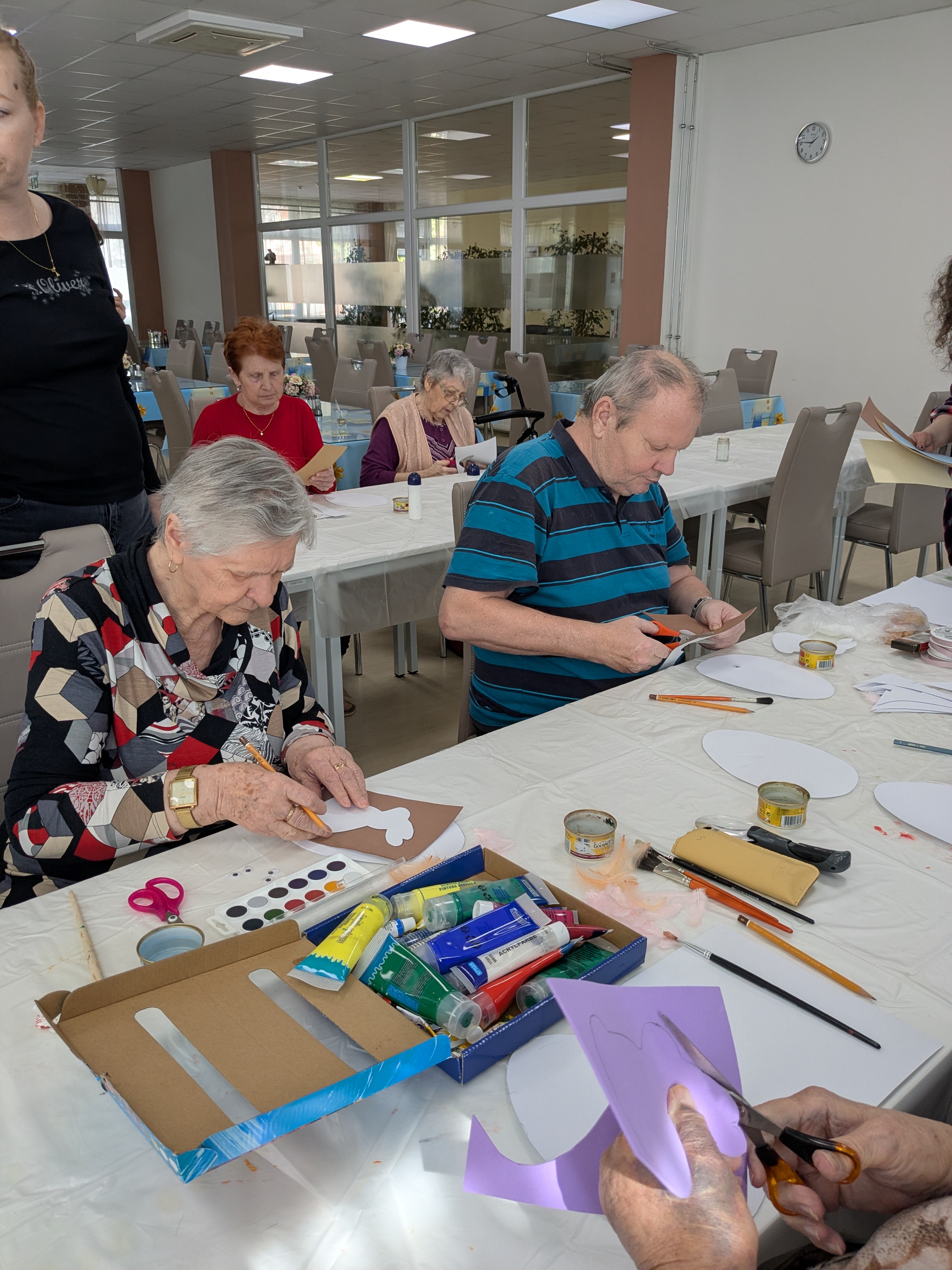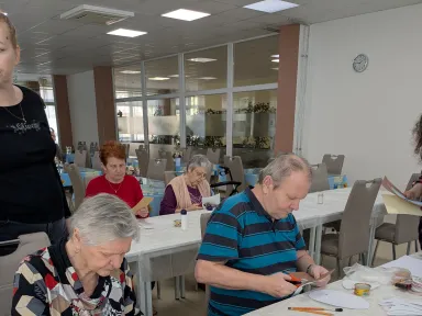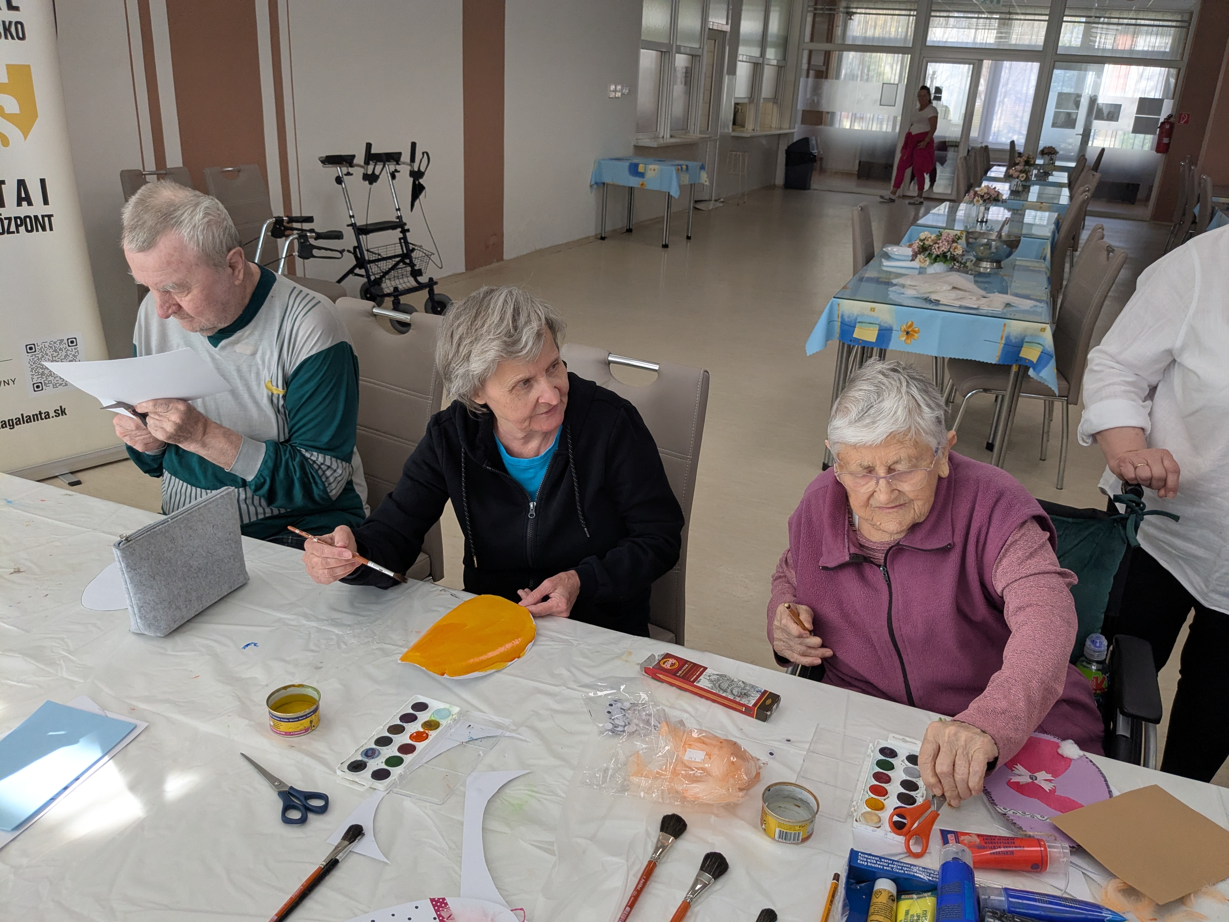 V našom zariadení sa v spolupráci s Galantským osvetovým strediskom uskutočnilo tvorivé podujatie zamerané na prípravu dekorácií k veľkonočným sviatkom . Naši seniori sa s nadšením zapojili do výroby veľkonočných ozdôb či rôznych ručne vyrábaných dekorácií. Pod vedením skúsenej lektorky si vyskúšali nové techniky a zároveň rozvíjali svoju kreativitu. Podujatie sa nieslo v príjemnej a tvorivej atmosfére, ktorá podporila nielen šikovnosť, ale aj spoločenské prepojenie medzi účastníkmi. Výsledkom boli krásne výrobky a spoločné chvíle, ktoré spríjemnili predveľkonočné obdobie všetkým zúčastneným.